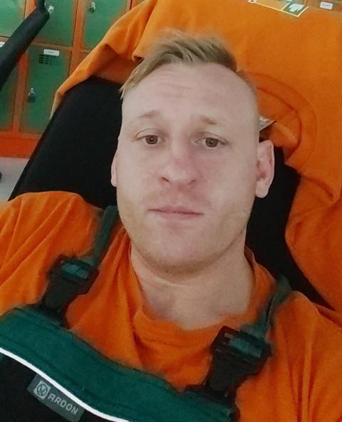 6'2" (187cm) and muscular.